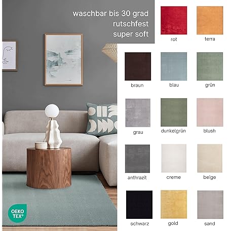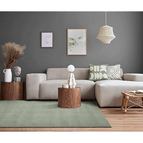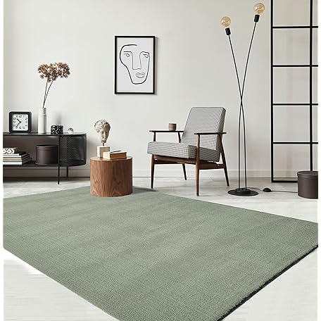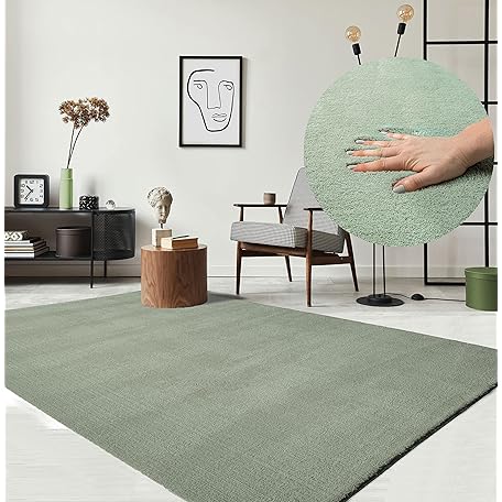 Thông tin sản phẩm the carpet Relax Rug, Modern, Fluffy, Short Pile, Non-Slip Underside, Washable up to 30°C, Super-Soft, Fur Look, Green, 140 x 200 cm