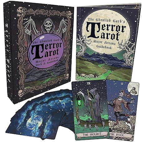 The Ghoulish Garb Terror Tarot Cards Game - 23 Major Arcana Cards Halloween Arcana Cards & Guide - Occult Gothic Tarot Cards for Beginners with Guide