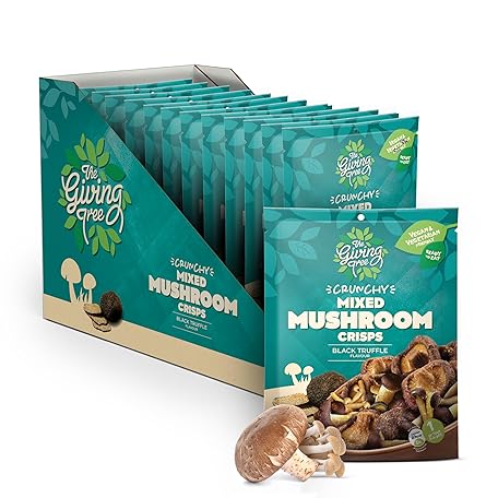 The Giving Tree Vacuum Fried Mushroom Veggie Crisps I Vegan, Gluten Free Nutritional Crisps (Case of 12, Mixed Mushroom Black Truffle)