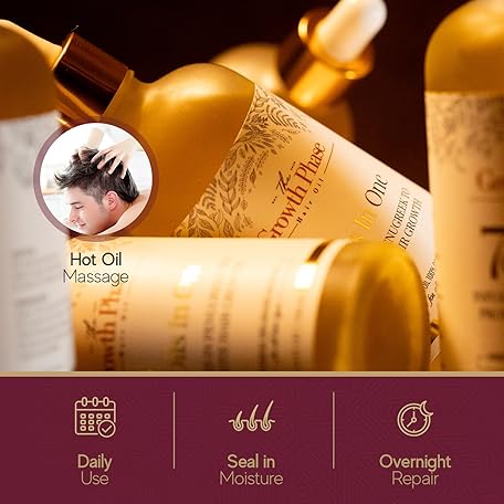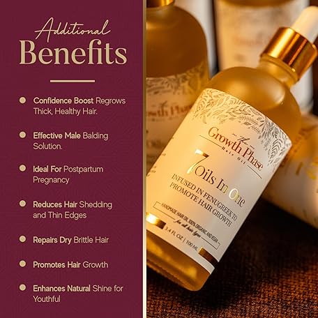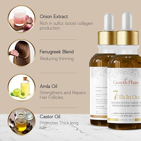 Thông tin sản phẩm The Growth Phase Hair Oil Serum - 100% Natural with Castor, Onion, Fenugreek, Amla Oils and Caffeine - Best Hair Loss Solution for Fast Hair Growth and Thickness Boost - Beard & Edge Growth