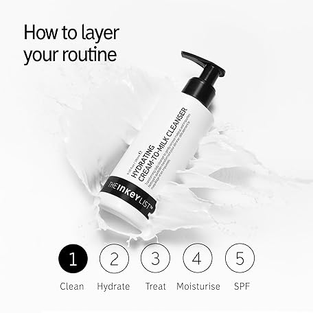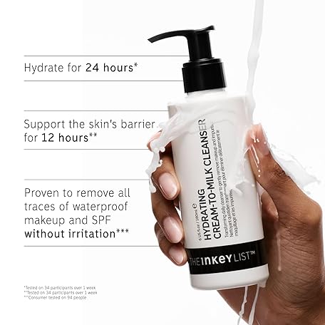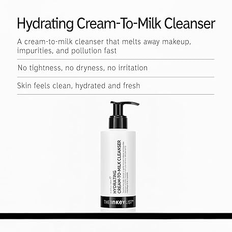 Thông tin sản phẩm The INKEY List Hydrating Cream-to-Milk Cleanser 180ml, 5% Rice Milk & Hyaluronic Acid, Gentle Cleaning Formula, Non-Stripping, Non-Drying, Non-Irriating, Hydrates & Dissolves Makeup, Vegan Friendly