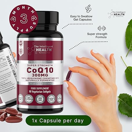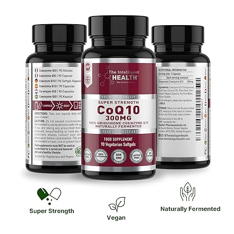Thông tin sản phẩm The Intelligent Health CoQ10 Supplement, Clean-Fermented Coenzyme Q10 Ubiquinone, High Strength and Absorption, 100% Vegeterian for Women & Men, Suitable for Everyday Use, 300mg 90 Softgels