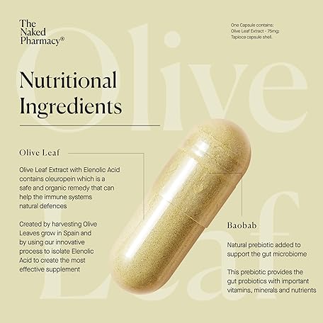 Sản phẩm The Naked Pharmacy Olive Leaf Supplements | for Immune System | Heart Health | with Elenolic Acid & Prebiotic | No Additives | Vegan | 60 Capsules đang được bán với giá ưu đãi là $30.0295 tại nước Anh.