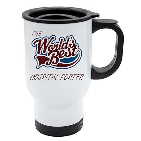 The Worlds Best Hospital Porter Thermal Eco Travel Mug - White Stainless Steel - Reusable Coffee Cup