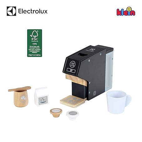 Thông tin sản phẩm Theo Klein 7401 Electrolux Coffee Maker, wood I Incl. cup, capsules, milk and sugar I Accessories for children and play kitchens | Dimensions: 19 cm x 5.5 cm x 14 cm I Toy for children from 3 years