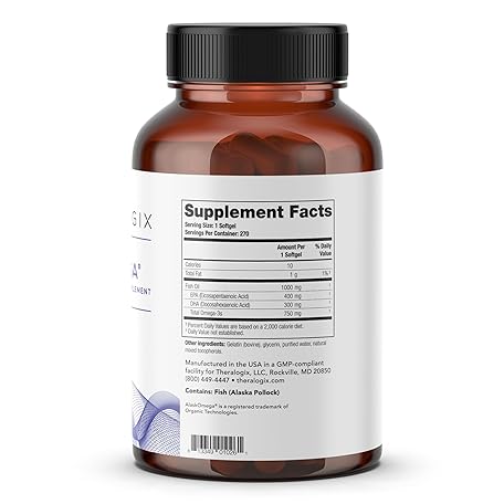 Thông tin sản phẩm Theralogix TherOmega Omega-3 Fish Oil Supplement - Supports Heart, Brain, Immune & Joint Health* - 700 mg DHA & EPA from Wild Alaska Pollock - Sustainably Sourced - NSF Certified - 270 Softgels