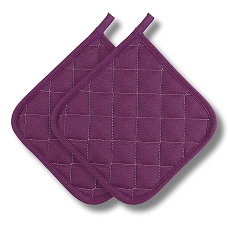 Thermo Heat-Resistant Pot Holders (2 Pieces) - Superior Protection, Stylish Design | 482°F Heat Resistance, Non-Flammable Fabric-Versatile (Purple)