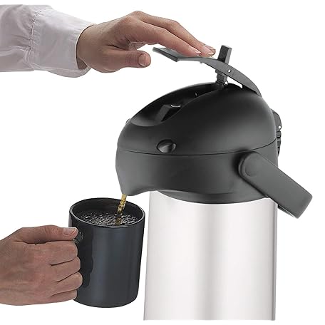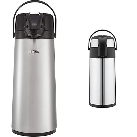 Thông tin sản phẩm Thermos 184625 Lever Action Pump Pot, 2.5 L Black & Pioneer Flasks SS50R Stainless Steel Airpot Hot Cold Water Tea Coffee Dispenser Conference Event Flask, Satin Finish, 5 litres