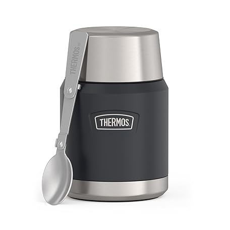 Thermos ICON Food Jar 0.47 L, Dark Grey Matte Graphite, Food Jar 470 ml, Double-Walled 18/8 Stainless Steel, Keeps Warm and Cold, with Folding Spoon, Non-Slip Base, Completely Leak-Proof