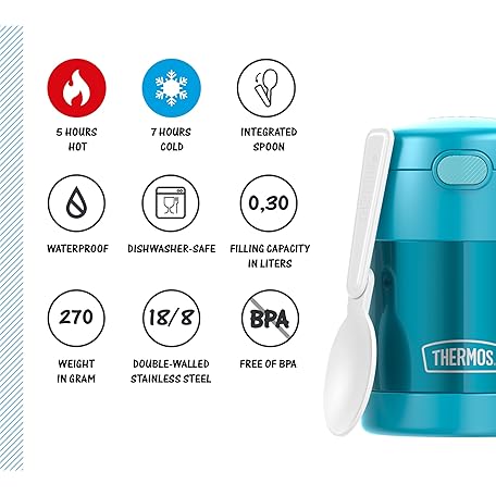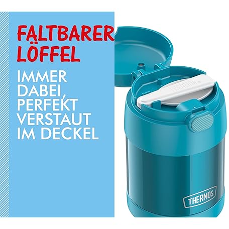 Thông tin sản phẩm THERMOS Kids FUNTAINER Food JAR 0.30 L, Ocean Teal, Thermal Food Container with Spoon for Children, 5 Hours hot / 7 Hours Cold, Absolutely Leak-Proof for Soup, Cereal, Break