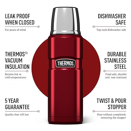 Sản phẩm Thermos Stainless King 470ml Multi- Purpose Thermos Flask - Original-Style Flask can be used as Travel Mug or Insulated Water Bottle for Daily Commute & Weekend Adventures – Red đang được bán với giá ưu đãi là $29.2774 tại nước Anh.