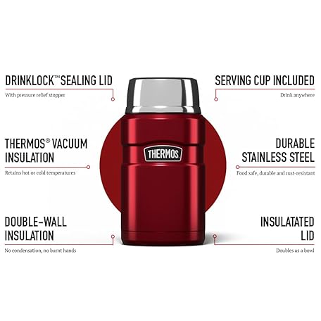 Sản phẩm Thermos Stainless King Food Flask, 710ml Capacity - Sleek Multi- Purpose Flask for Daily Food Prep - Durable Stainless Steel with Red Finish - Ideal for On-the-Go Meals & Drinks đang được bán với giá ưu đãi là $40.9622 tại nước Anh.