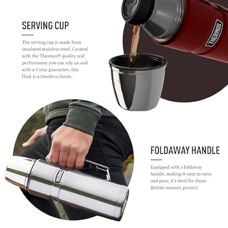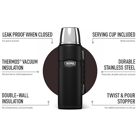 Thương hiệu Thermos là cái tên nổi tiếng được rất nhiều khách hàng trên thế giới chọn lựa. Với kiểu dáng đẹp mắt, sang trọng, sản phẩm Thermos Stainless King Matt Black Travel Flask (1.2L) Premium Leak Proof Insulated Tea & Coffee Flask for Hot & Cold Drinks, Built-in Cup, Twist-Pour Stopper, BPA-Free, Durable Steel là sự lựa chọn hoàn hảo nếu bạn đang tìm mua một món cho riêng mình.