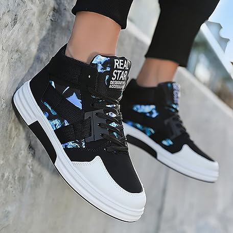 Sản phẩm Thick Bottom High Top Canvas Shoes For Men - Fashion Printed Canvas Shoes, Thick Bottom Cushioning Walking Shoes, Adjustable Lace Up Casual Sports Shoes, Outdoor Daily Shoes Size 5.5-8 UK đang được bán với giá ưu đãi là $21.0915 tại nước Anh.