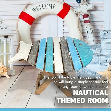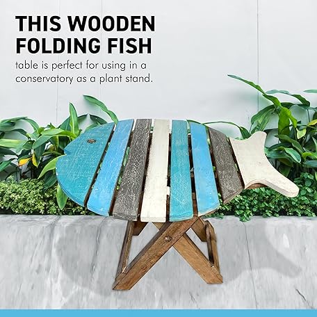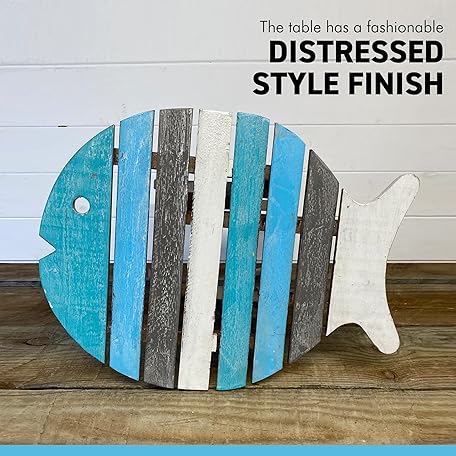 Sản phẩm Thorness Small WOODEN FOLDING FISH shaped SIDE TABLE with distressed finish | Blue and Whitewash wood Colours | bring a simple seaside feel to any room or would fit into a nautical themed room đang được bán với giá ưu đãi là $36.3842 tại nước Anh.