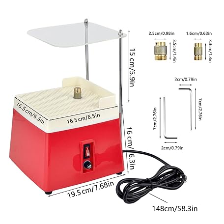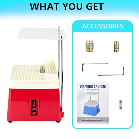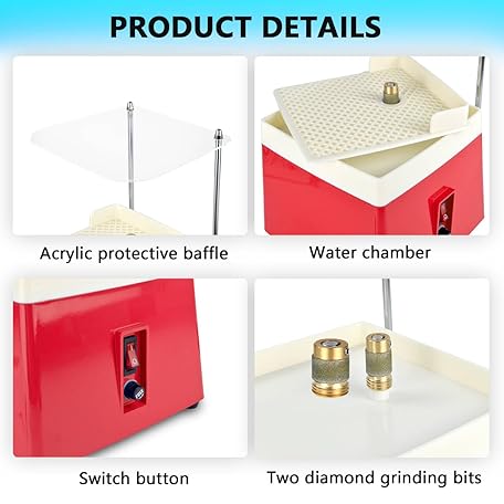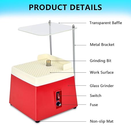 Thông tin sản phẩm TIEXITOR UK Plug Stained Glass Grinder with Acrylic Baffle - Portable Machine with 5/8" & 1" Grinding Bits, 4200RPM Tool in Red