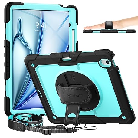 timecity for iPad Air 13 Inch Case M3 2025/ M2 2024, 360° Rotating Stand, Pencil Holder & Wireless Charging, Shockproof with Screen Protector & Shoulder Strap - for Designers & Professionals, Blue