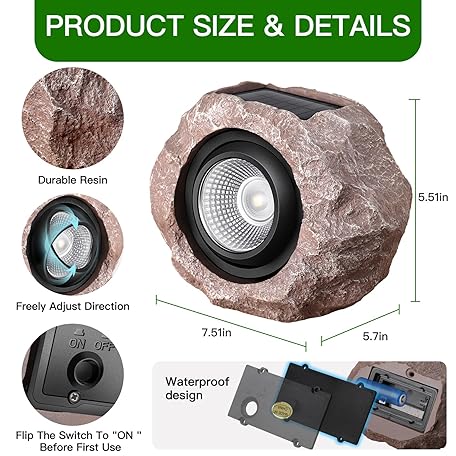 Thông tin sản phẩm Timeflies Solar Rock Lights Outdoor, 1 Pack Super Bright Solar Spot Lights Outdoor IP65 Waterproof Solar Yard Lights, Auto On/Off Solar Garden Lights for Paths, Sidewalks, Yards, Landscapes, Patios