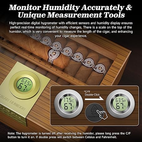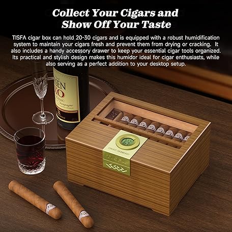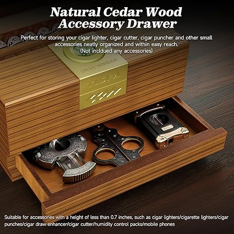 Thông tin sản phẩm TISFACigar Box HandcraftedHumidor with Hygrometer and Humidifier, Cedar Wooden Case with Drawer, Divider, Cigar Length Gauge, Desktop Gift