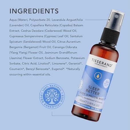 Thông tin sản phẩm Tisserand Aromatherapy - Sleep Better - Room and Body Mist Sleep Spray - Lavender, Jasmine & Sandalwood Essential Oils - Made with 100% Natural Pure Essential Oils - 100 ml (Packaging May Vary)