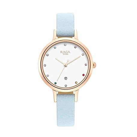 TITAN Women Brass Analog White Dial Watch-Np2666Wl02/Np2666Wl02, Band Color-Blue, White, Analog Watch