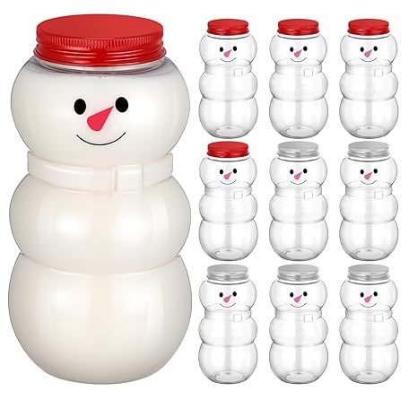 Tofficu 10Pcs Christmas Candy Jars Home Holiday Decor Clear Plastic Cookie Jar with Snowman Doll Sweet Gift Box Bottle Holder Empty Juice Bottles Milk Beverage Bottles Drink Containers 500ml