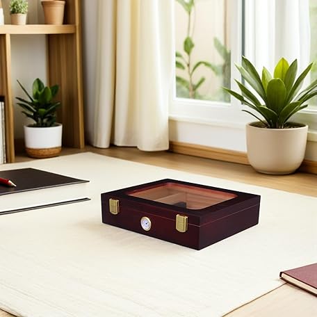 Sản phẩm TOKIDNY Portable Wooden Cigar Humidor Box with Glass Top Cedar Desktop Storage Case with Built Hygrometer and Humidifier Elegant Brown Travel Cigar Display Holder for Men đang được bán với giá ưu đãi là $35.2724 tại nước Anh.