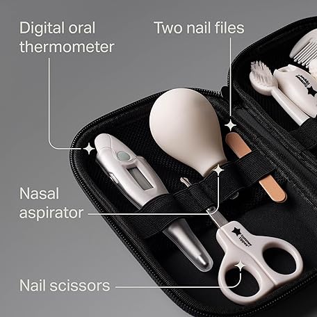 Thông tin sản phẩm Tommee Tippee Baby Healthcare and Grooming Kit, 9X Essential Newborn Care Items for Home and Travel, Wipe-Clean and Waterproof Travel Case