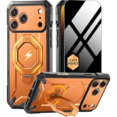 Tongate for iPhone 17 Pro Max Case with 360° Spin Magnetic Stand, [Compatible with MagSafe][Military-Grade Protection] with Privacy Screen Protector & Camera Control Cover for iPhone 17 ProMax,Orange