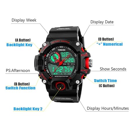 Sản phẩm TONSHEN Men's Military Sport Watches Multifunction Waterproof Analog Display Dual Dial Two Timezone Electronic 12H/24H Time Calendar Day Date 164FT 50M Water Resistant Digital Wristwatch đang được bán với giá ưu đãi là $32.8853 tại nước Anh.