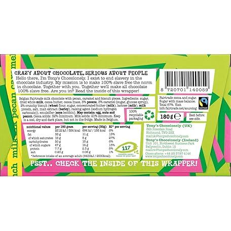 Sản phẩm Tony's Chocolonely Milk Chocolate Pecan Crunch Bar - 180g, Gift, Vegetarian - Belgian Fairtrade Chocolate đang được bán với giá ưu đãi là $4.3164 tại nước Anh.