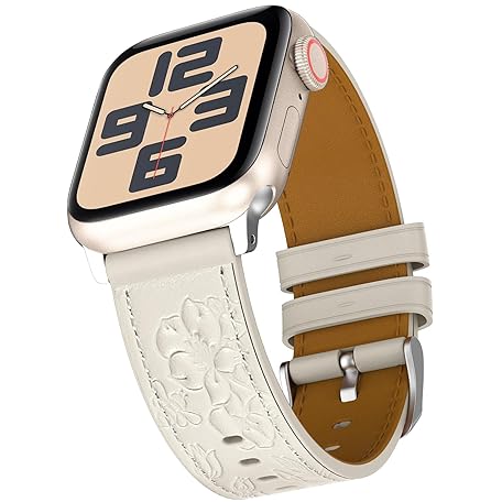 TOPsic Leather Strap for Apple Watch SE 2 40mm, Floral Engraved Wristband, Compatible with Apple Watch 41mm 40mm 38mm, Standard Design, Rose Color, 235mm x 9.3 inches, Unisex, Not Water Resistant