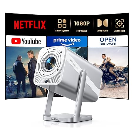 TOPTRO Projector 4K【Netflix Officially & DoIby Audio】Smart Projector with 360° Adjustable Stand, 30000 Lumens FHD 1080P WiFi 6 Bluetooth, Auto Focus & Keystone, Home Cinema TV Projectors for Bedroom