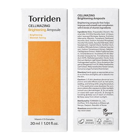 Sản phẩm Torriden Cellmazing Brightening Ampoule Brightening Blemish Toning Vitamin C 5 Complex 30ml đang được bán với giá ưu đãi là $31.7626 tại nước Anh.