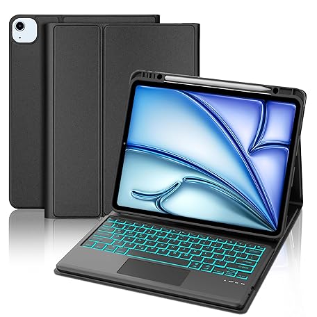 Touch Keyboard Case for Pro 12.9 Inch 6th/5th/4th/3rd Generation & Case Keypad for iPad Air 13 (M3 2025/M2 2024) with Trackpad, Detachable Key Board with Colors Backlit for Pro12.9 2018-2022, Black