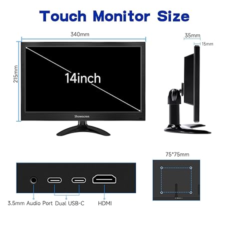 Thông tin sản phẩm Touchscreen Portable Monitor 14inch,FHD 1920 x 1080P Desktop HDMI USB C Input Portable Monitor for Laptop PS3/4 Raspberry Pi with Built-in Two Speakers, Computer PC Touch Monitors