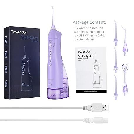 Thông tin sản phẩm TOVENDOR Electric Water Flosser, Cordless Rechargeable Dental Oral Irrigator IPX7 Waterproof 300ML Travel Water Teeth Cleaner with 5 Tips for Braces Care Teeth Gums Cleaning, Home Office Daily Use