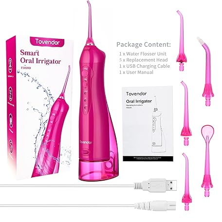 Thông tin sản phẩm TOVENDOR Electric Water Flosser, Rechargeable Dental Oral Irrigator - 3 Modes, 5 Tips for Teeth, Gums, Braces, Dental Care, Family Oral Health (300ML, IPX7Waterproof Waterflosser)