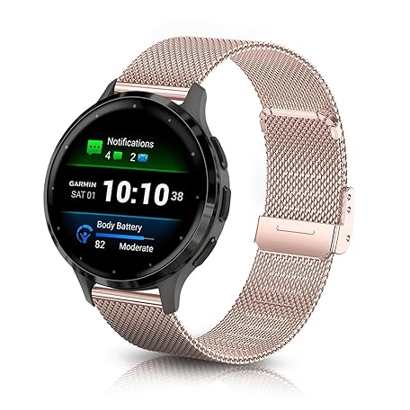 ToVioc 18mm Watch Strap for Garmin Venu 4 41mm/3s 41mm/2S, Stainless Steel Metal Watch Band for Garmin Forerunner 265S/255S/255S Music - Rose Gold