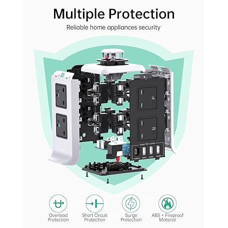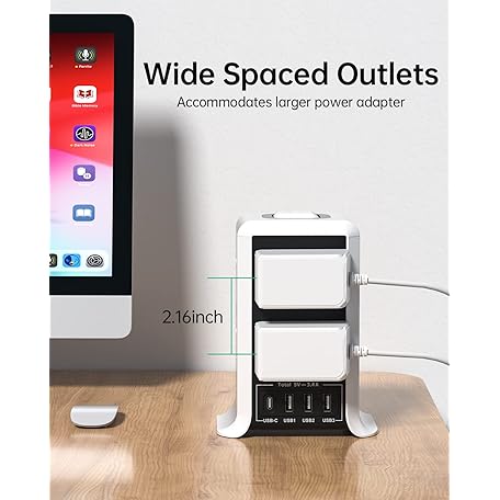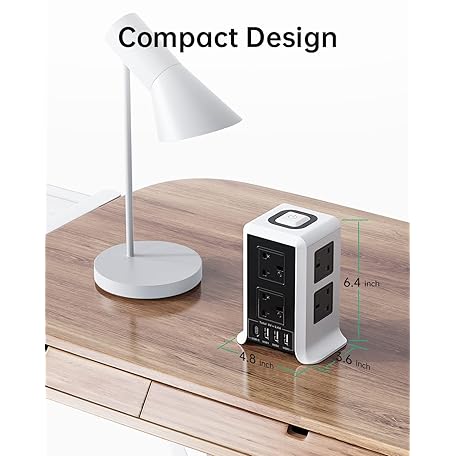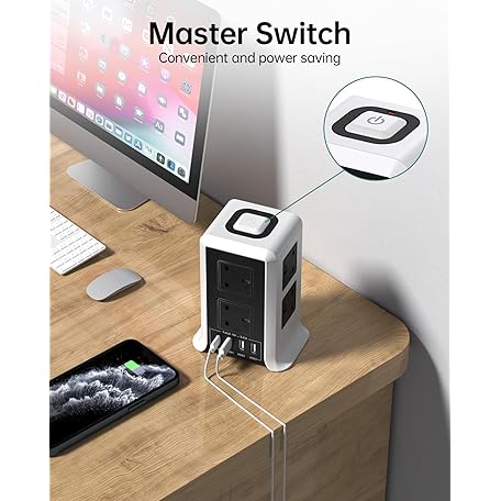 Thông tin sản phẩm Tower Extension Lead with USB Slots, 8 Way Multi Plug Extension Tower & 4 USB Ports,Surge Protected Extension Lead with Switch, 2M Extension Cable,Tower Extension Cord for Home, Office