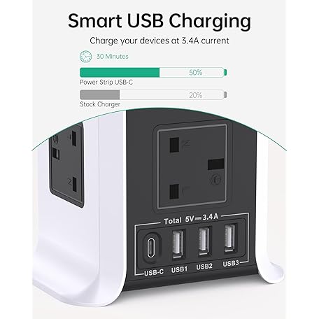 Sản phẩm Tower Extension Lead with USB Slots, 8 Way Multi Plug Extension Tower & 4 USB Ports,Surge Protected Extension Lead with Switch, 2M Extension Cable,Tower Extension Cord for Home, Office đang được bán với giá ưu đãi là $24.8738 tại nước Anh.