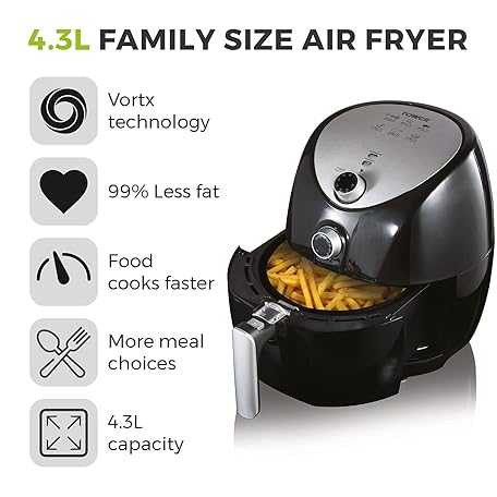 Sản phẩm Tower T17021 Family Size Air Fryer with Rapid Air Circulation, 60-Minute Timer, 4.3L, 1500W, Black đang được bán với giá ưu đãi là $97.4242 tại nước Anh.