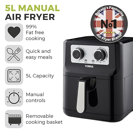 Sản phẩm Tower T17090 Vortx Manual Air Fryer, 5L, Black đang được bán với giá ưu đãi là $71.9945 tại nước Anh.