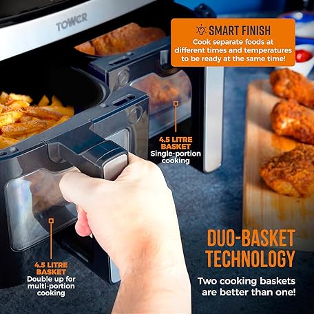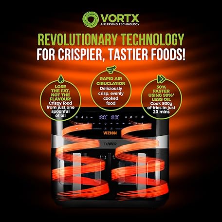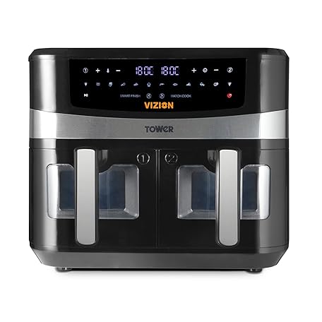 Sản phẩm Tower, T17100, Vortx Vizion 9L Dual Basket Air Fryer with Digital control panel & 10 One-touch Pre-sets, Black đang được bán với giá ưu đãi là $117.0115 tại nước Anh.