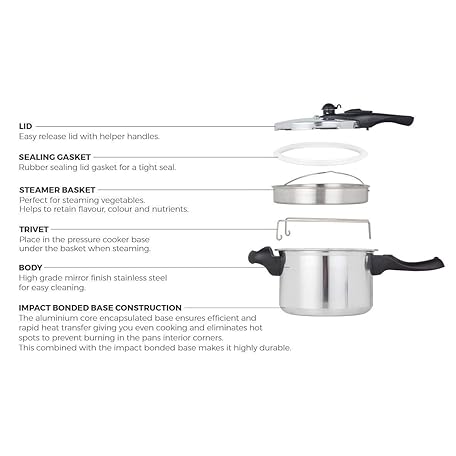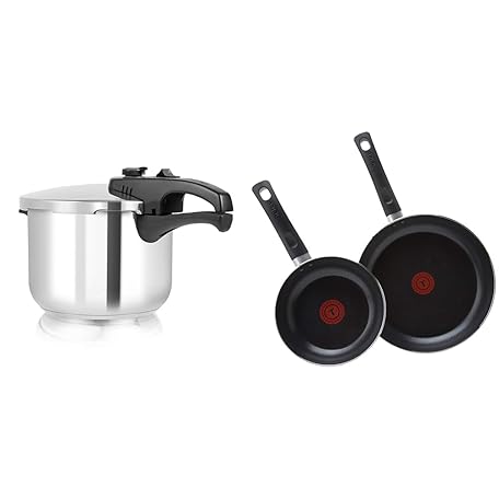 Tower T80244 6L/22cm Pressure Cooker with Steamer Basket, Stainless Steel, Silver & Tefal Taste Twin Pack, Aluminium Frying Pans, Pan Set, Pans 20 cm and 28 cm diameter, Non-Stick