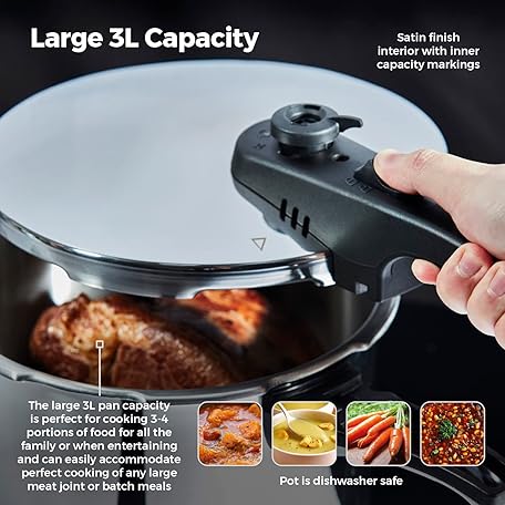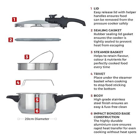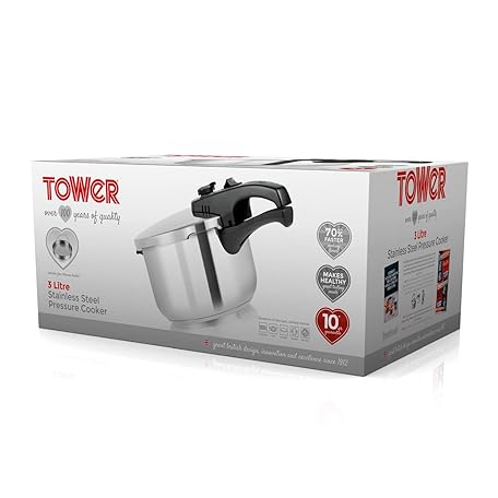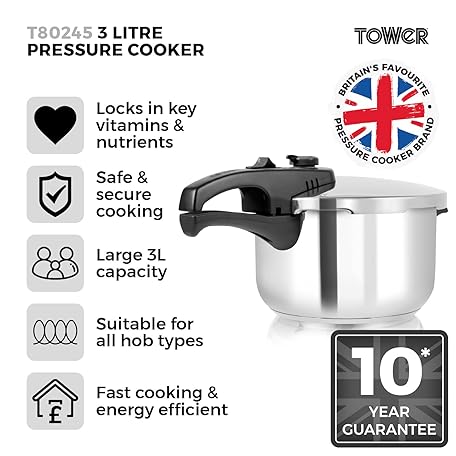Thông tin sản phẩm Tower T80245 Stainless Steel Pressure Cooker with Steamer Basket, 3 Litre, Stainless Steel, Silver