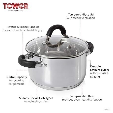 Sản phẩm Tower T80837 Casserole Dish, 24cm- Stainless Steel, Silver đang được bán với giá ưu đãi là $26.4216 tại nước Anh.