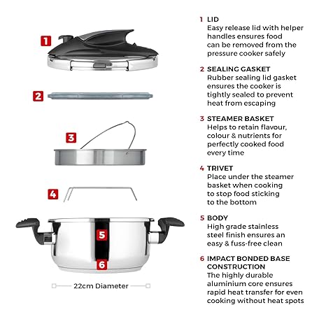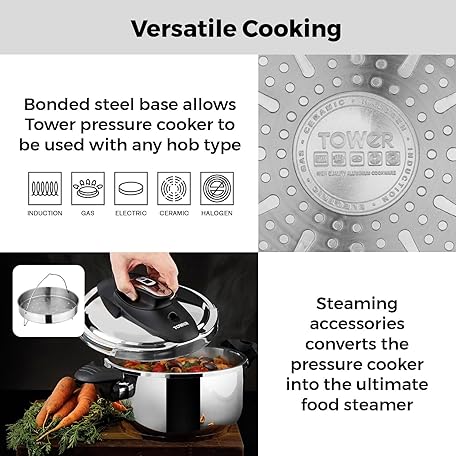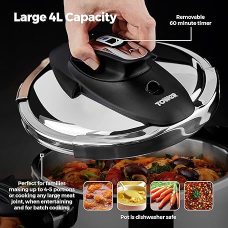 Thông tin sản phẩm Tower T920003 One-Touch Ultima Pressure Cooker with Detachable 60-Minute Timer, 6L, Stainless Steel