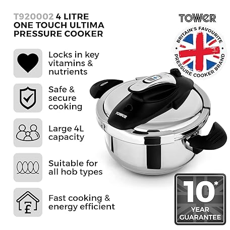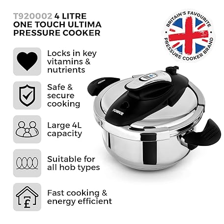 Sản phẩm Tower T920003 One-Touch Ultima Pressure Cooker with Detachable 60-Minute Timer, 6L, Stainless Steel đang được bán với giá ưu đãi là $115.9542 tại nước Anh.