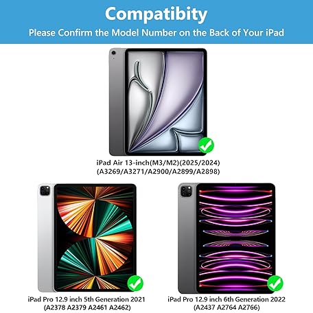 Thông tin sản phẩm TQQ for iPad Air 13-inch (M3/M2, 2025/2024) & Pro 12.9 inch Case with Keyboard, Keyboard case for 12.9-inch iPad Pro 6th/5th Gen - with Pencil Holder for iPad Air 13-inch/iPad Pro 12.9 (Blue)